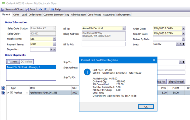 Sales Order – Product – Last Sold Price & Inventory Info